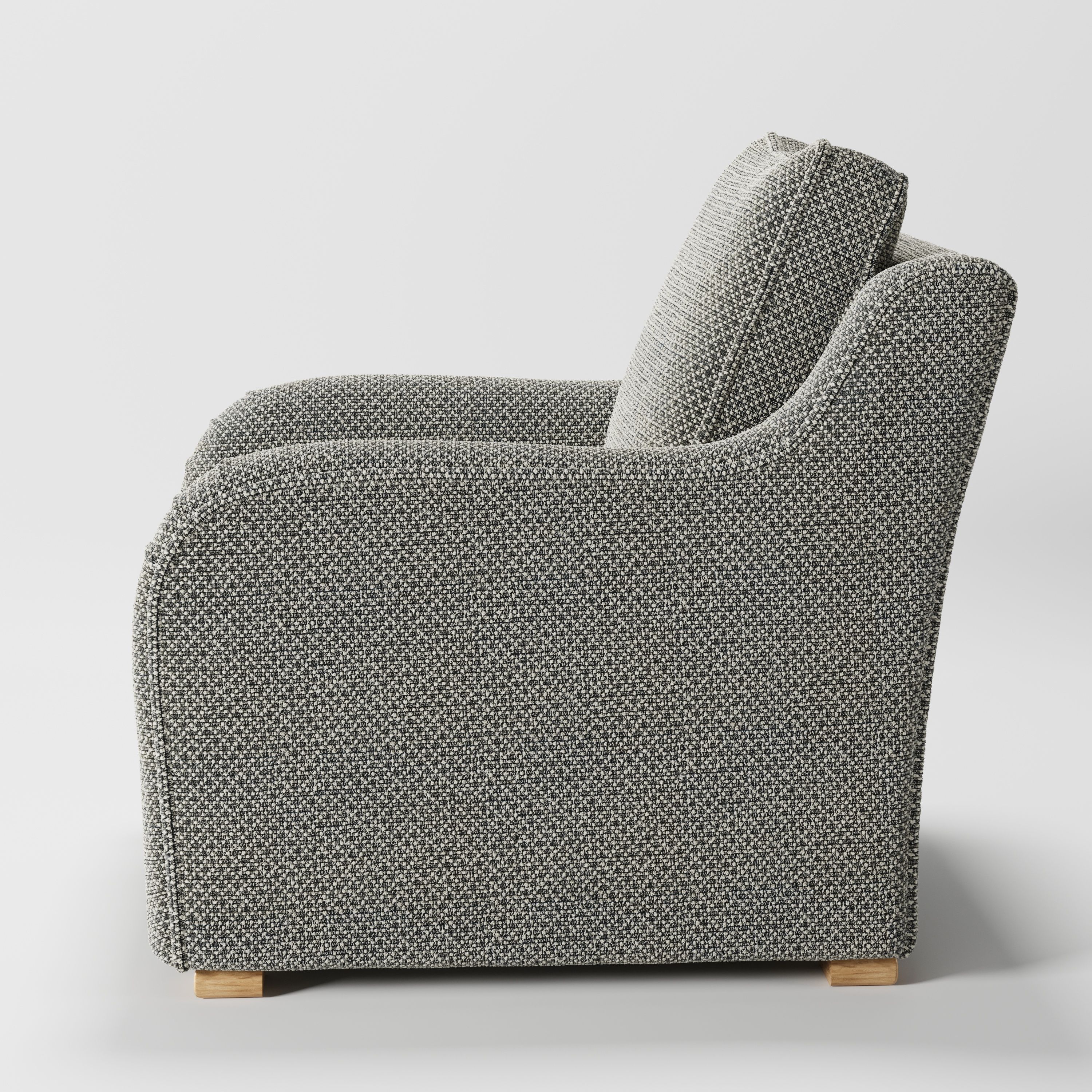 The Cashel armchair is shaped to reduce visual weight, making it an ideal choice for interiors that benefit from a lighter touch. As a modern armchair, it allows space to flow naturally around it.