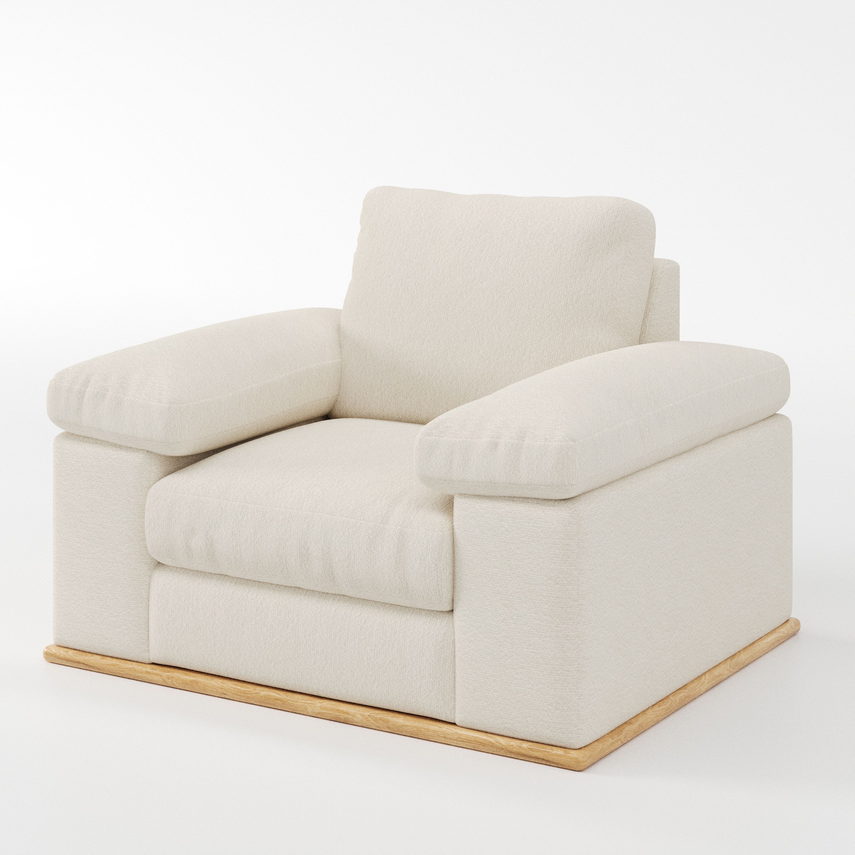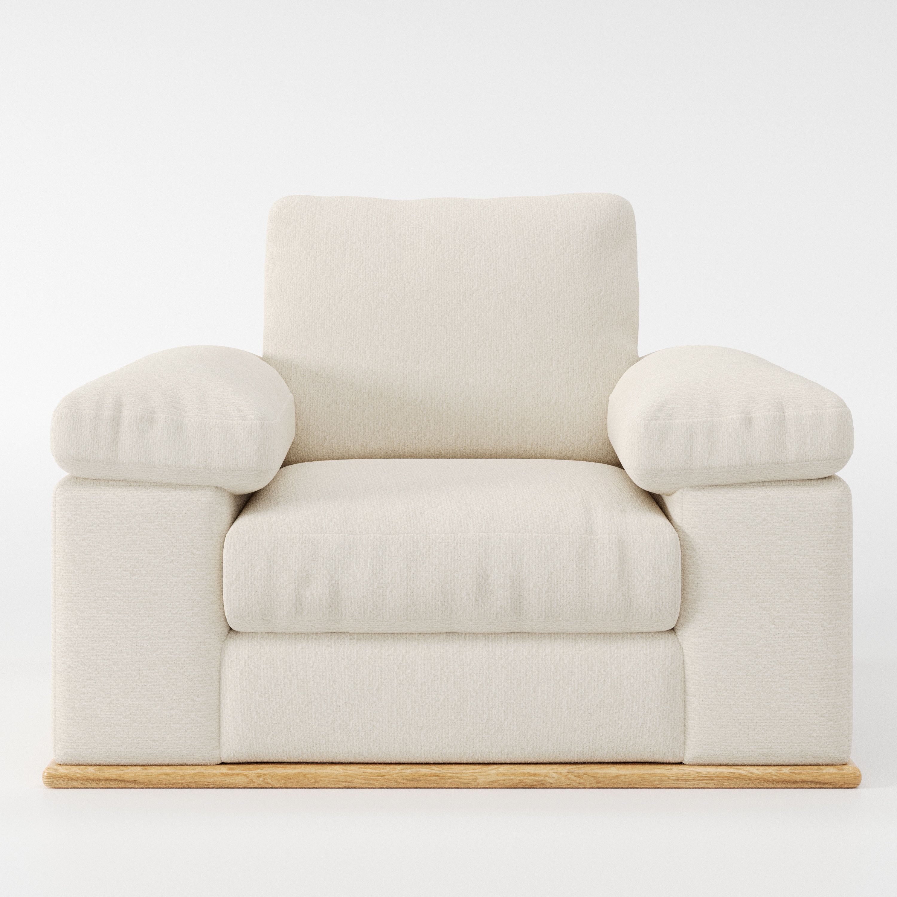 The Cusher armchair introduces a grounded presence to a space, using balanced form to create a sense of visual stability. As a modern armchair, it feels settled and composed rather than dominant.