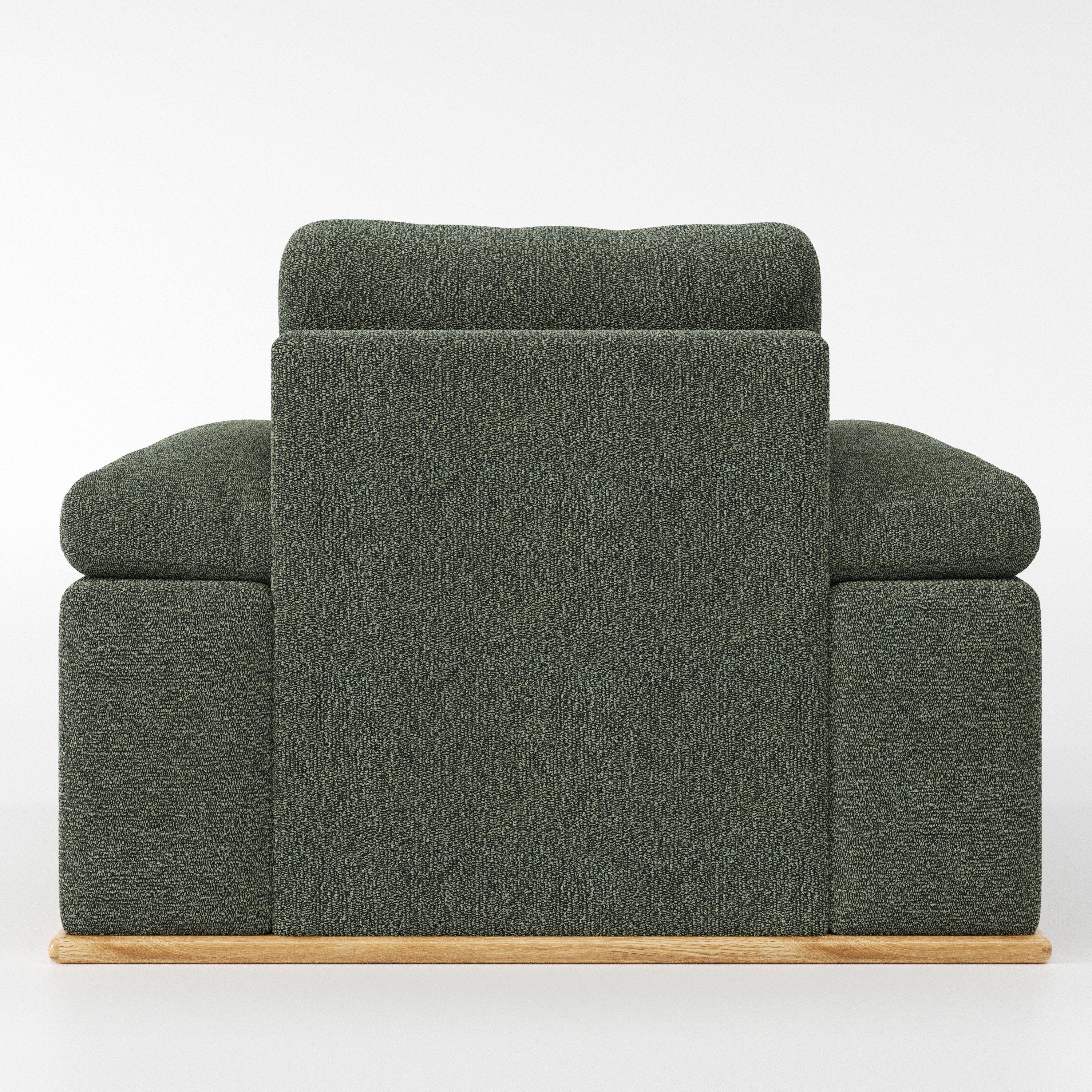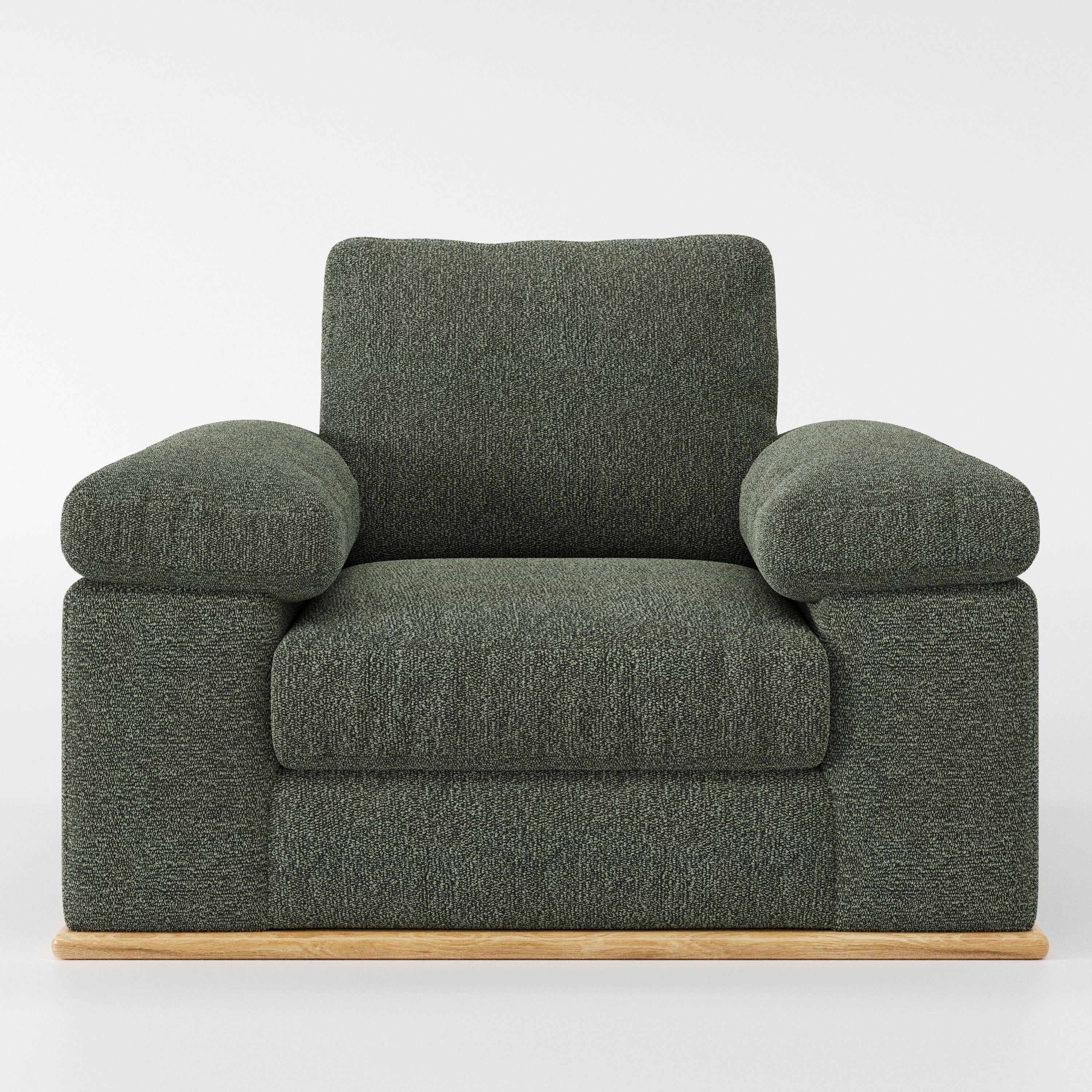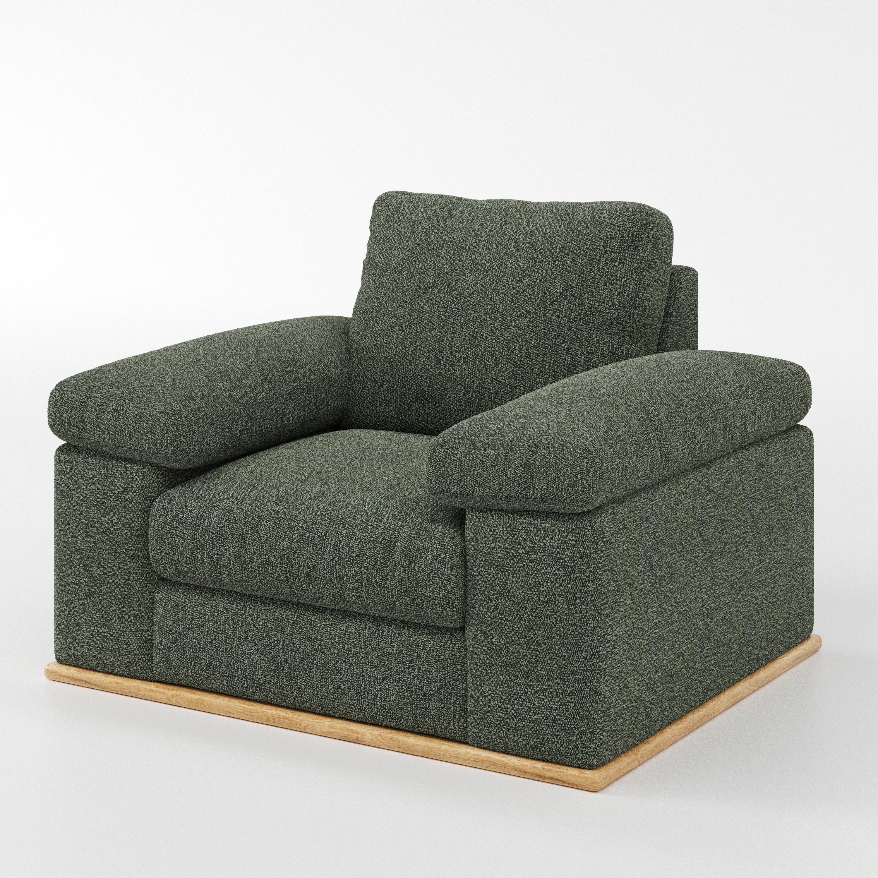 The Cusher armchair introduces a grounded presence to a space, using balanced form to create a sense of visual stability. As a modern armchair, it feels settled and composed rather than dominant.