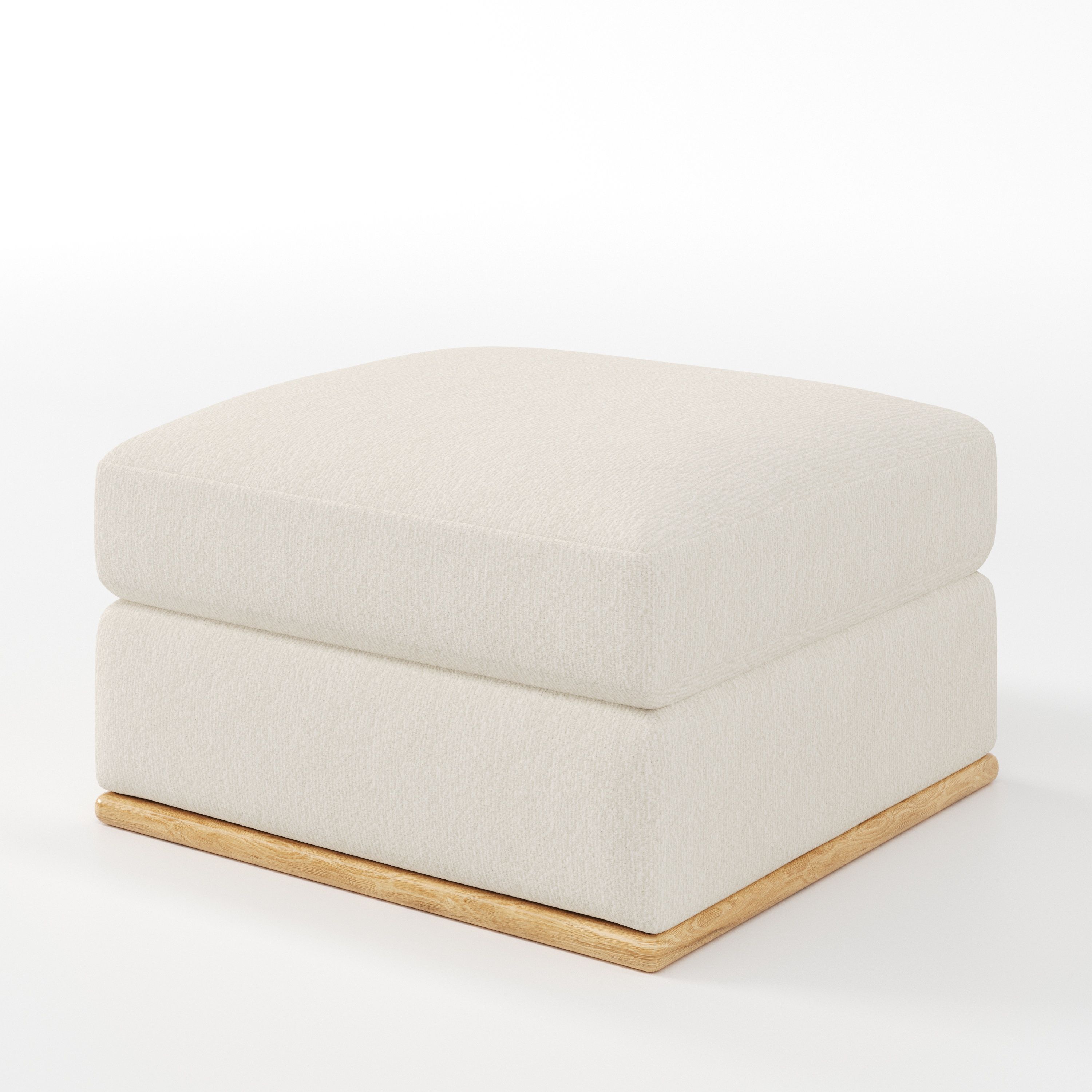 As an upholstered footstool, Cusher complements sofas and armchairs while preserving a sense of openness within the living space.