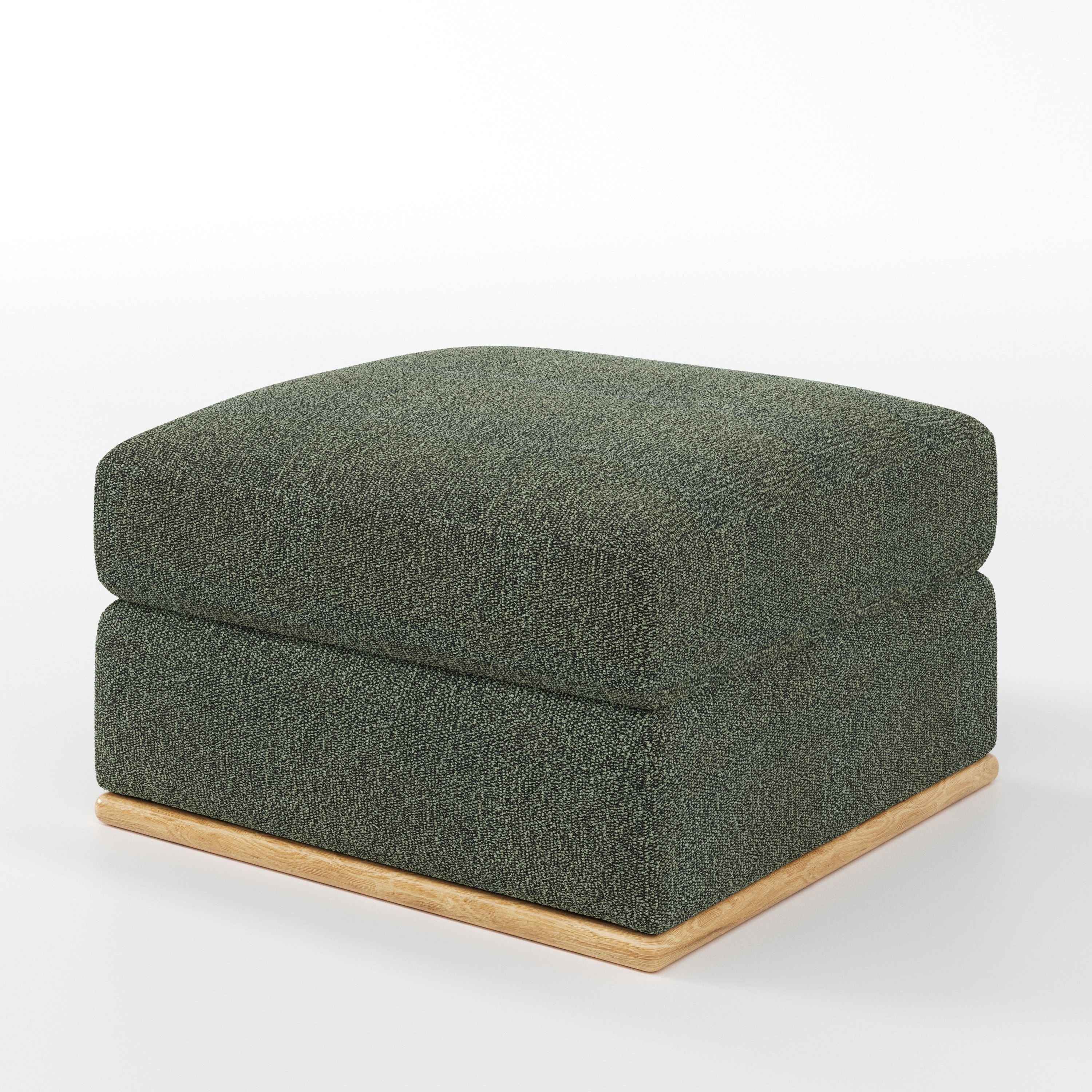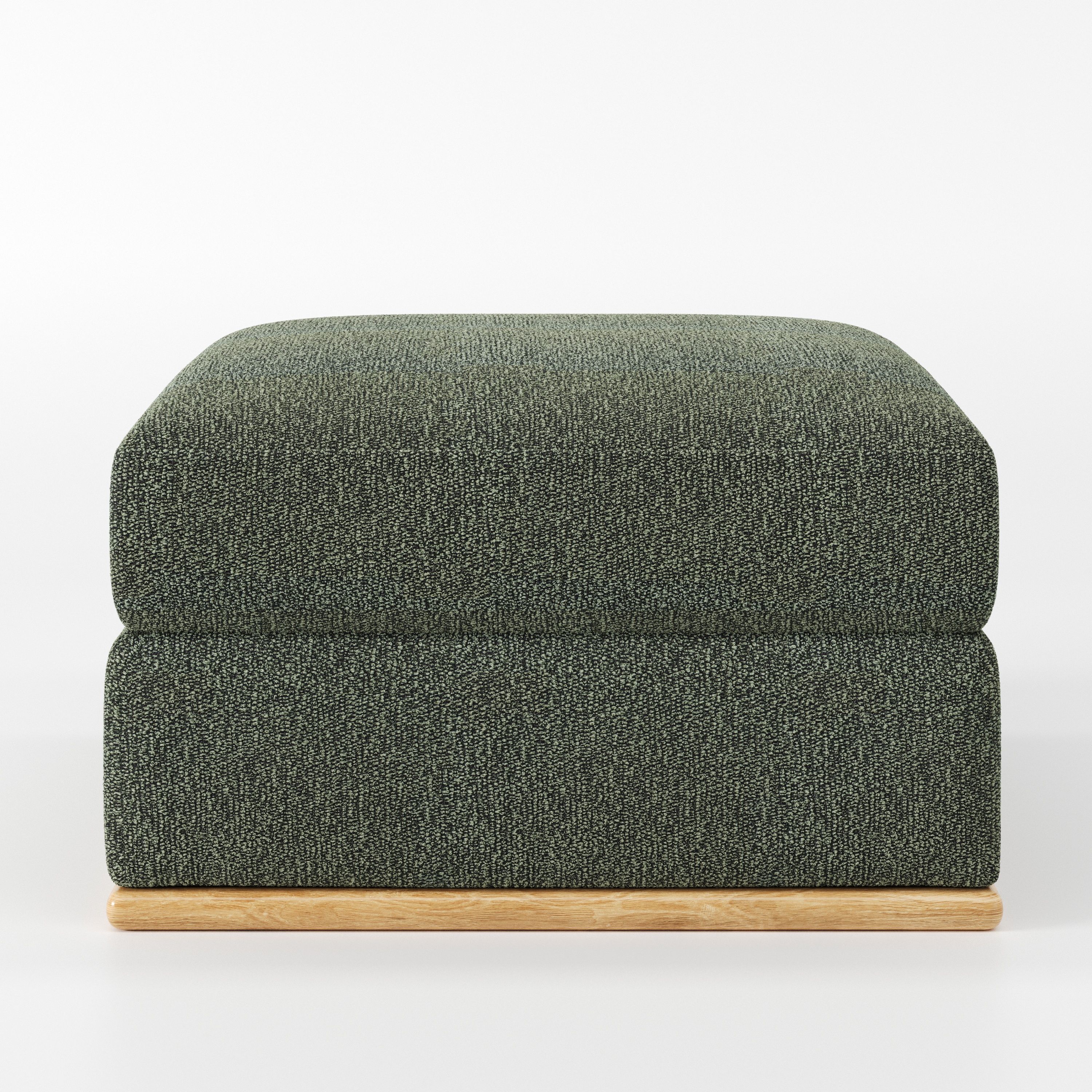 As an upholstered footstool, Cusher complements sofas and armchairs while preserving a sense of openness within the living space.