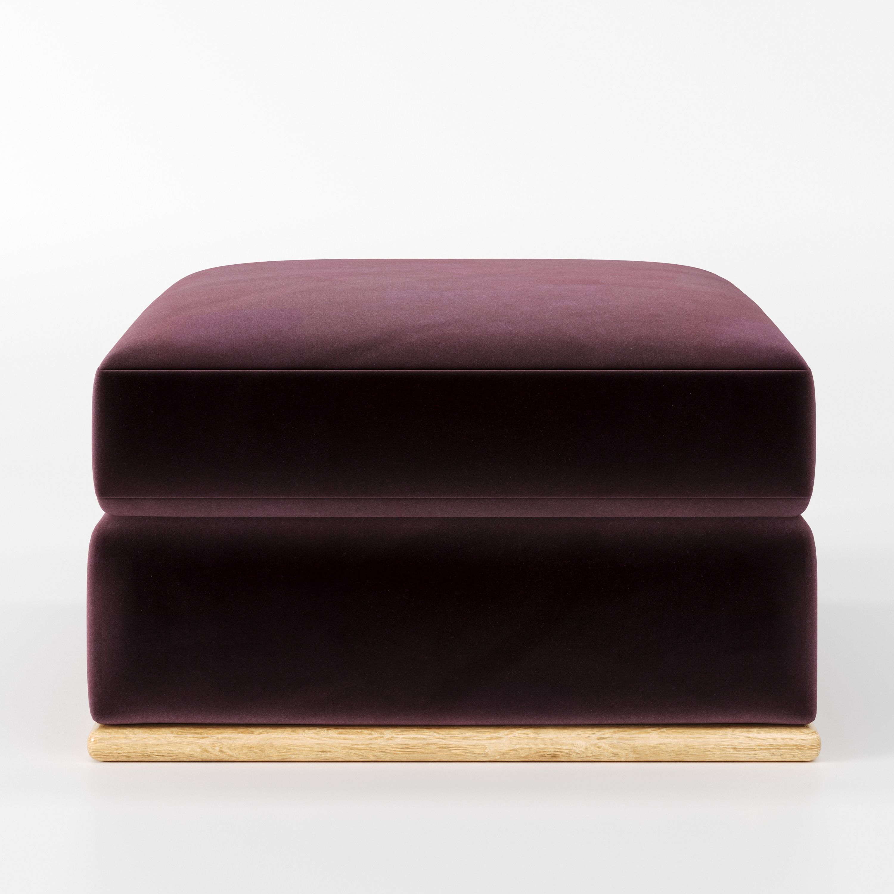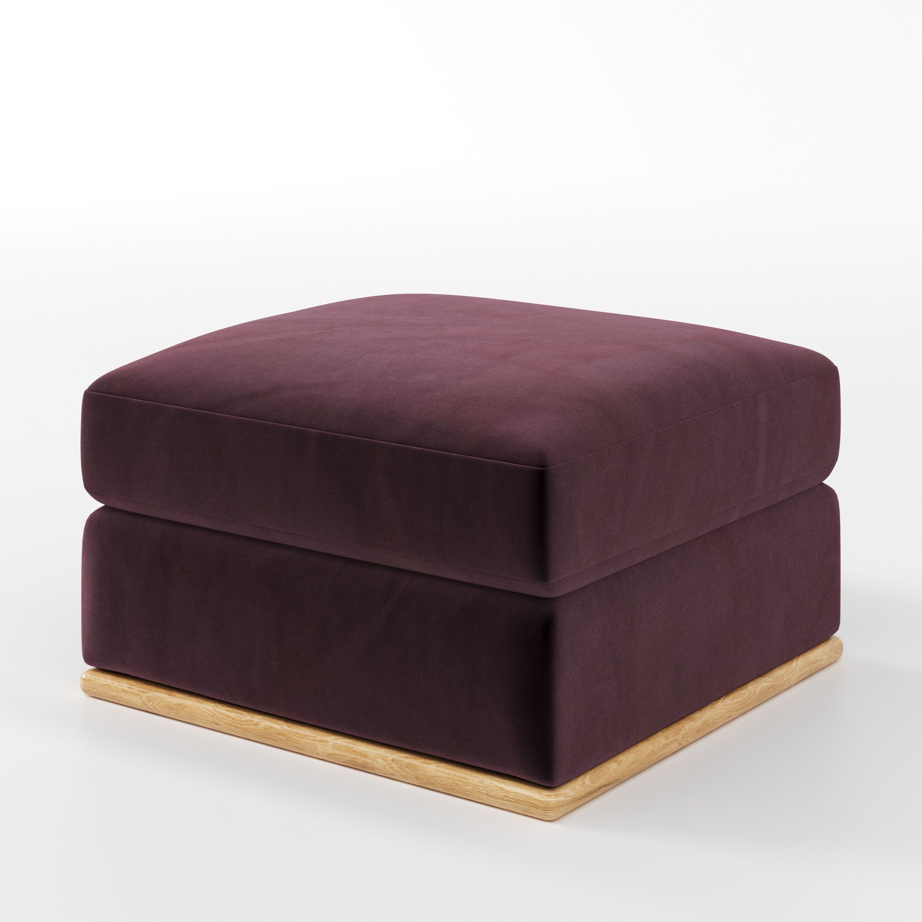 As an upholstered footstool, Cusher complements sofas and armchairs while preserving a sense of openness within the living space.