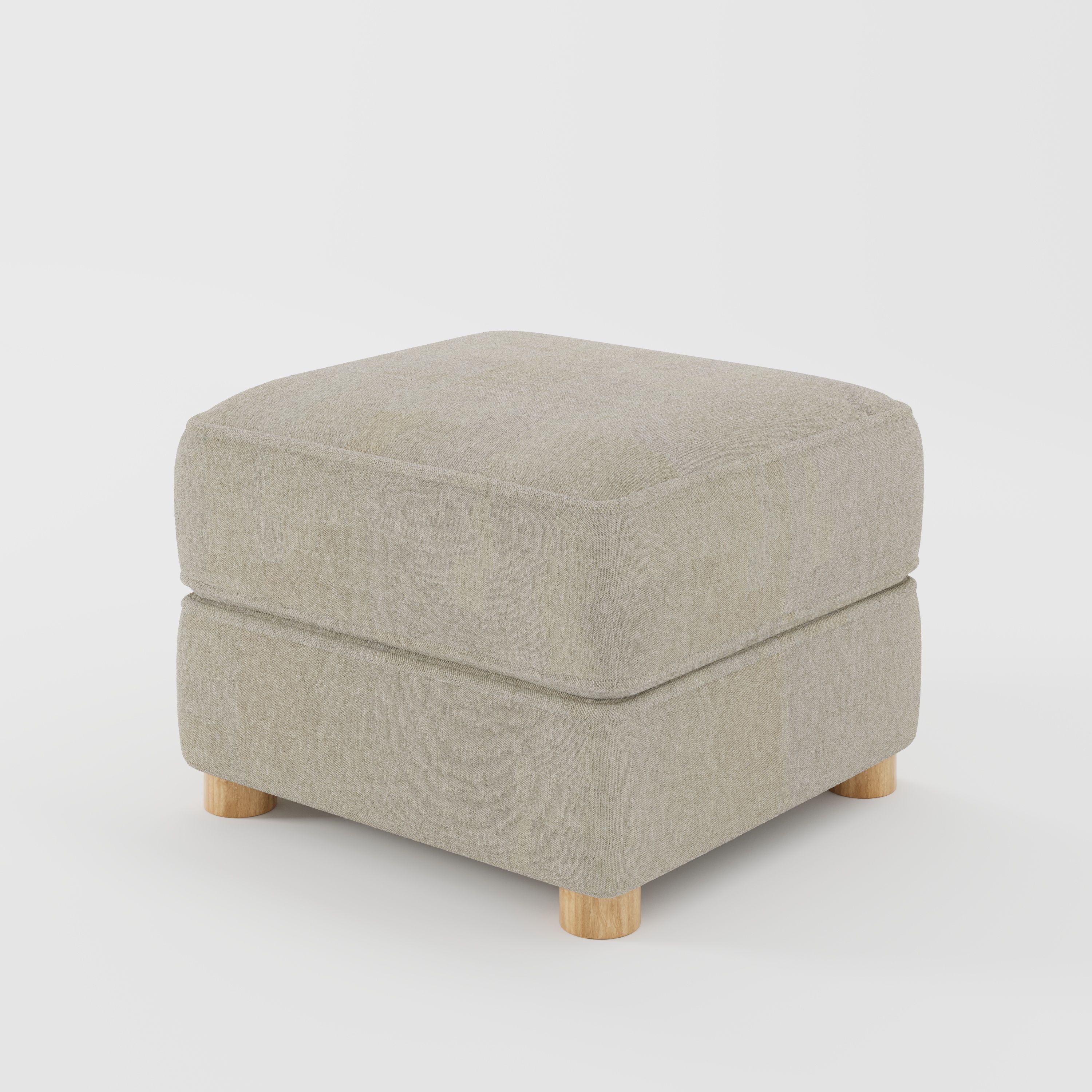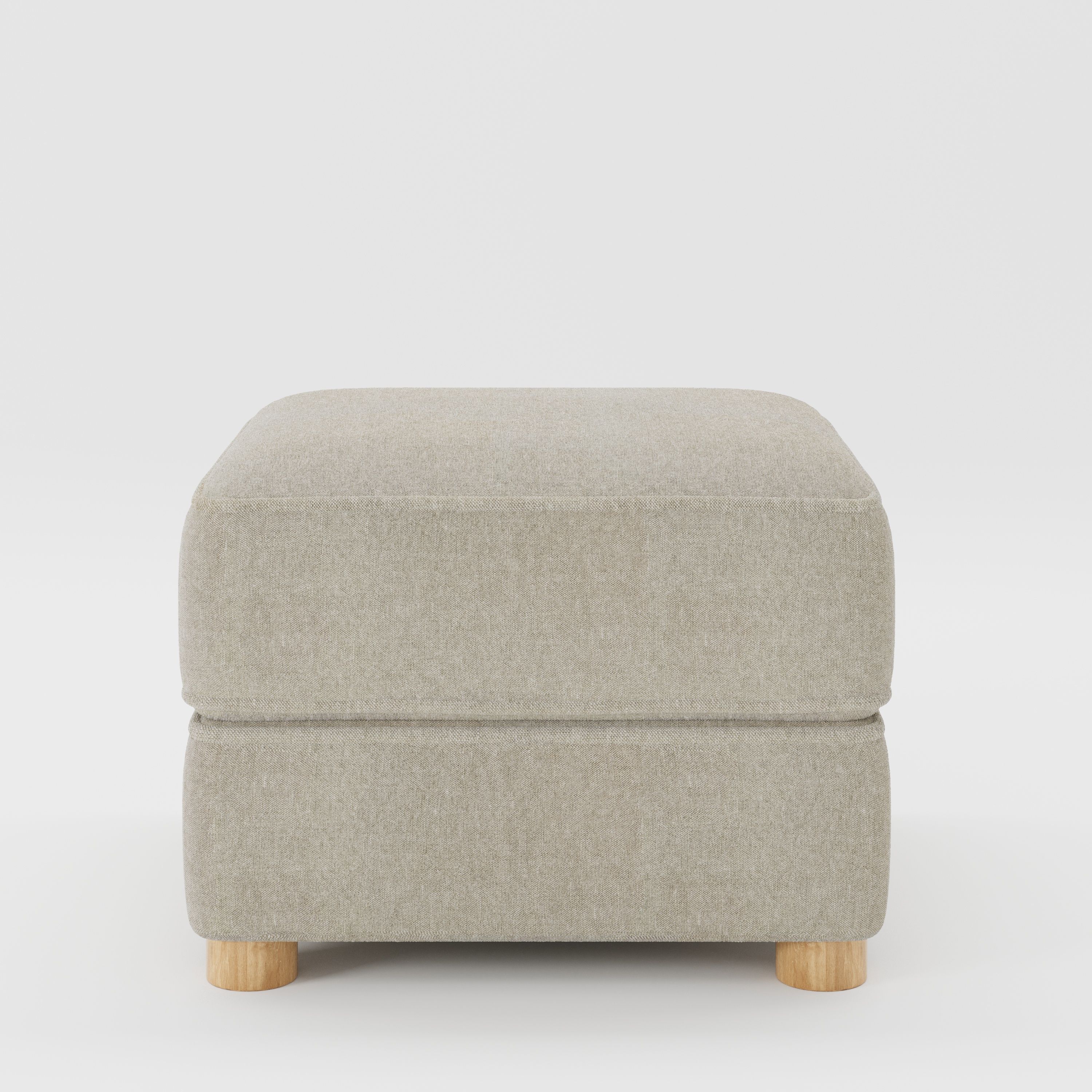 As an upholstered footstool, Fergus settles quietly into a room, supporting comfort while maintaining a light, unobtrusive profile.