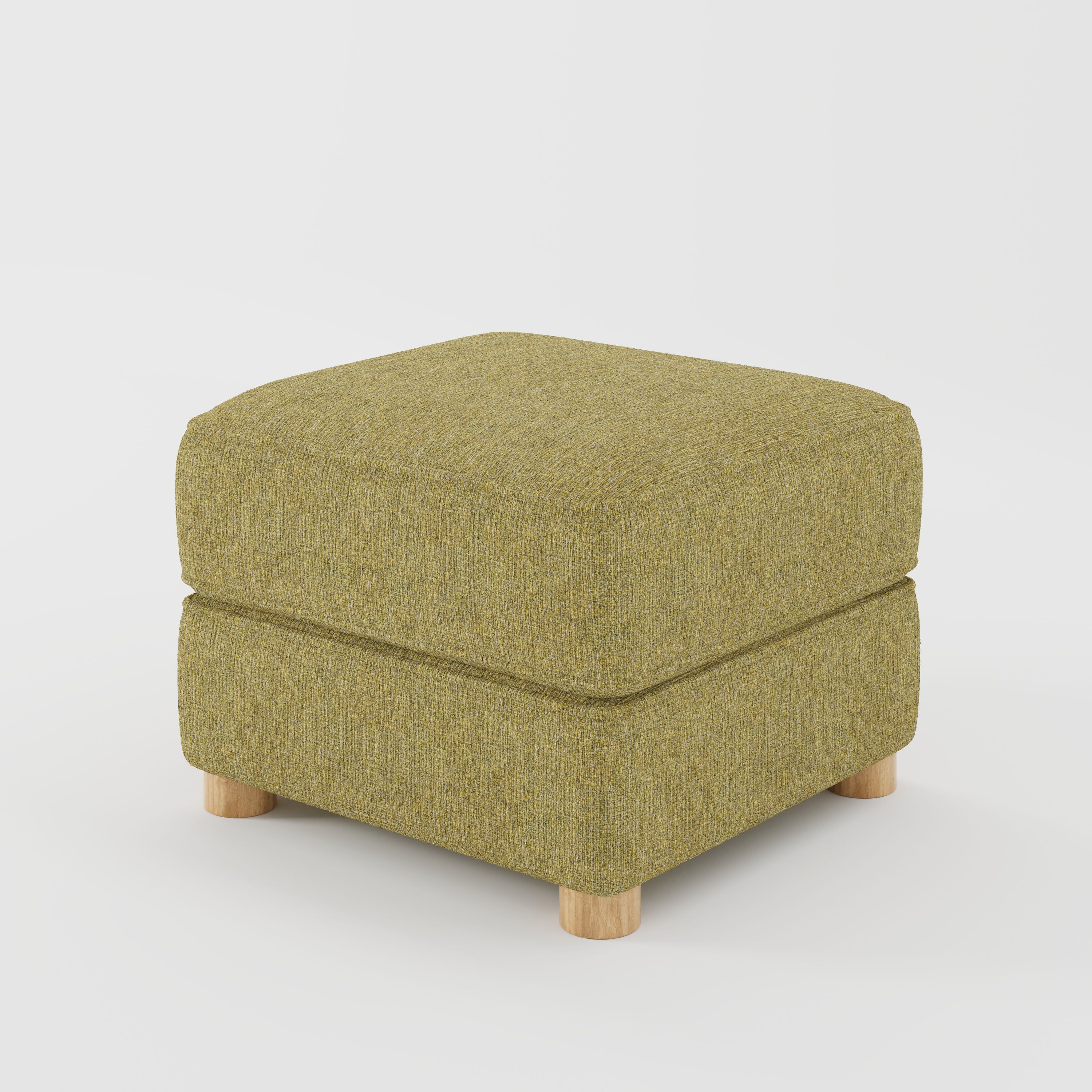 As an upholstered footstool, Fergus settles quietly into a room, supporting comfort while maintaining a light, unobtrusive profile.