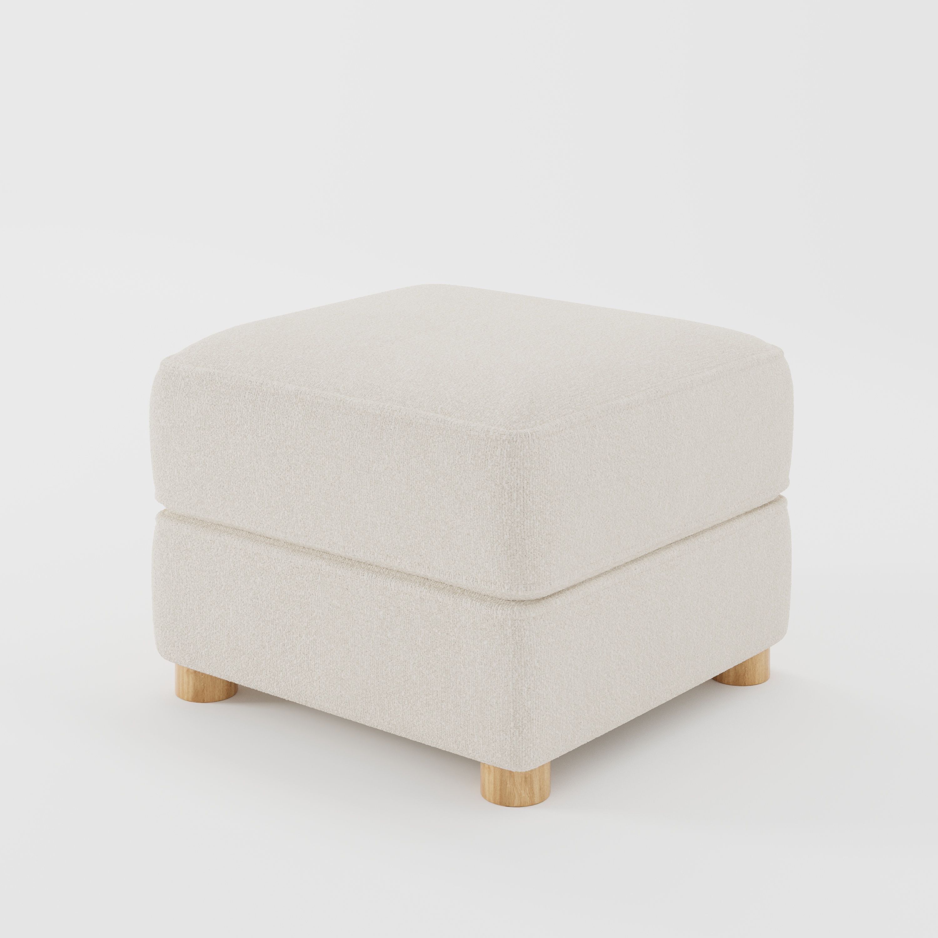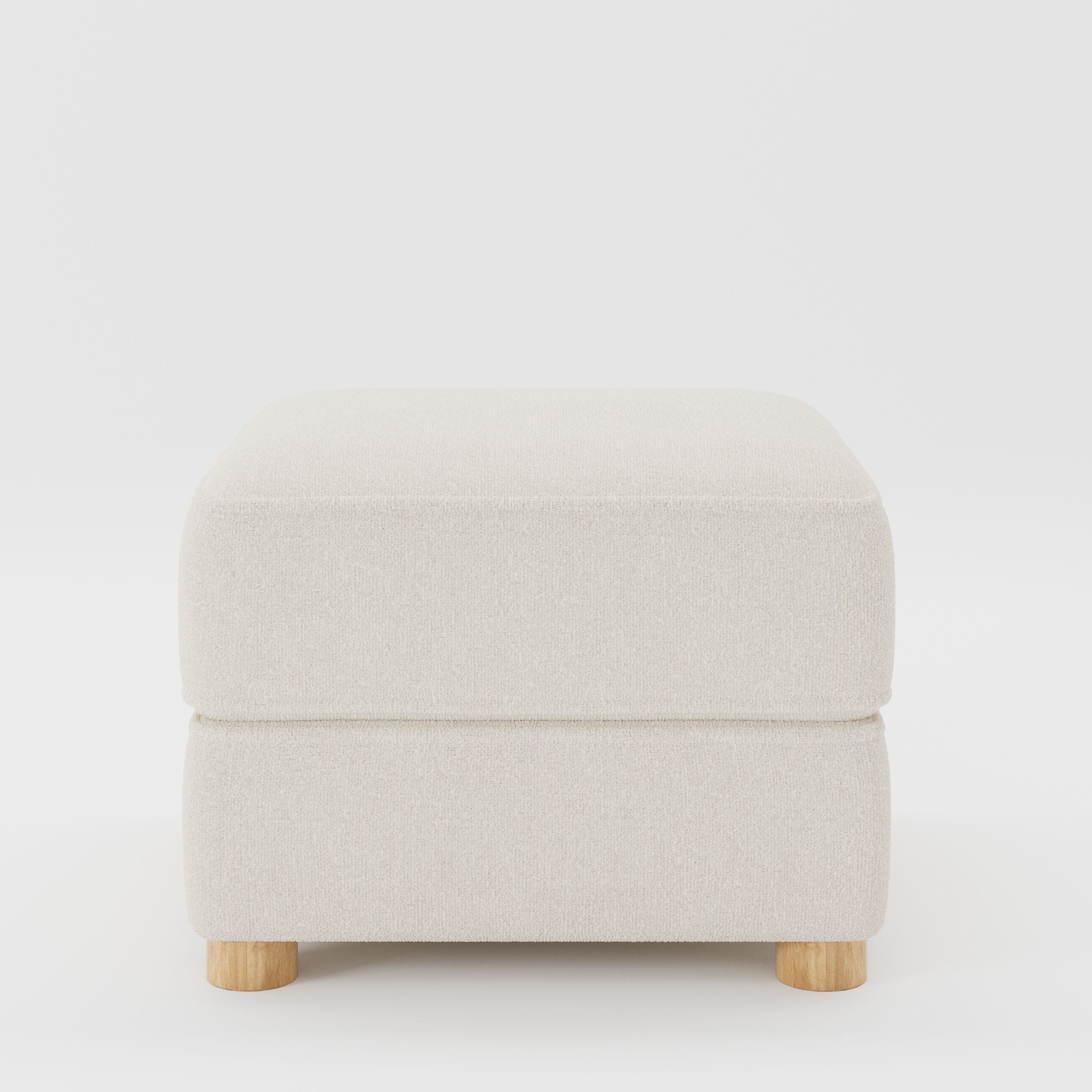 As an upholstered footstool, Fergus settles quietly into a room, supporting comfort while maintaining a light, unobtrusive profile.