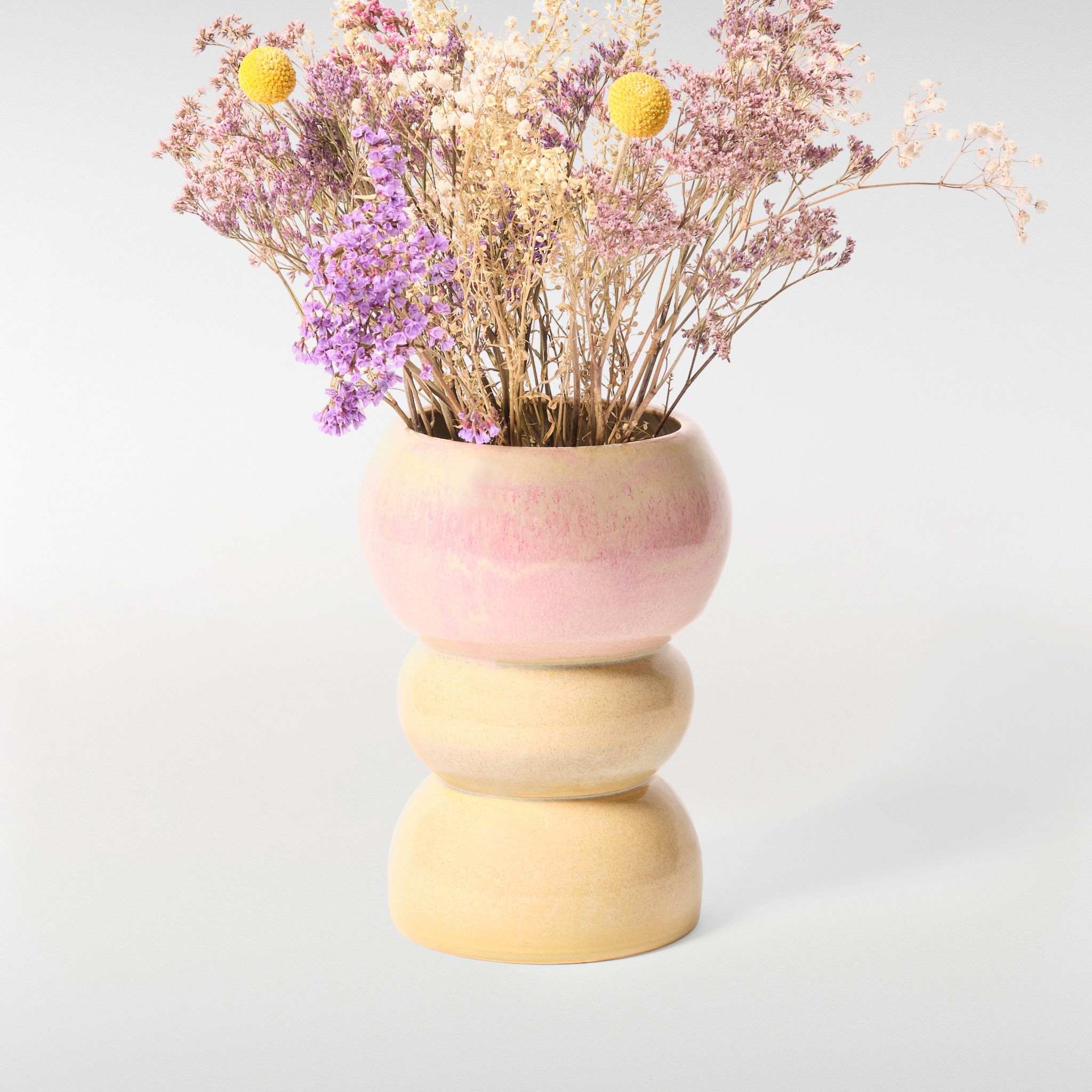 Playful yet poised, the Loam Vase No. 1 stands out with its rounded, tiered form and soft contrast of colour.