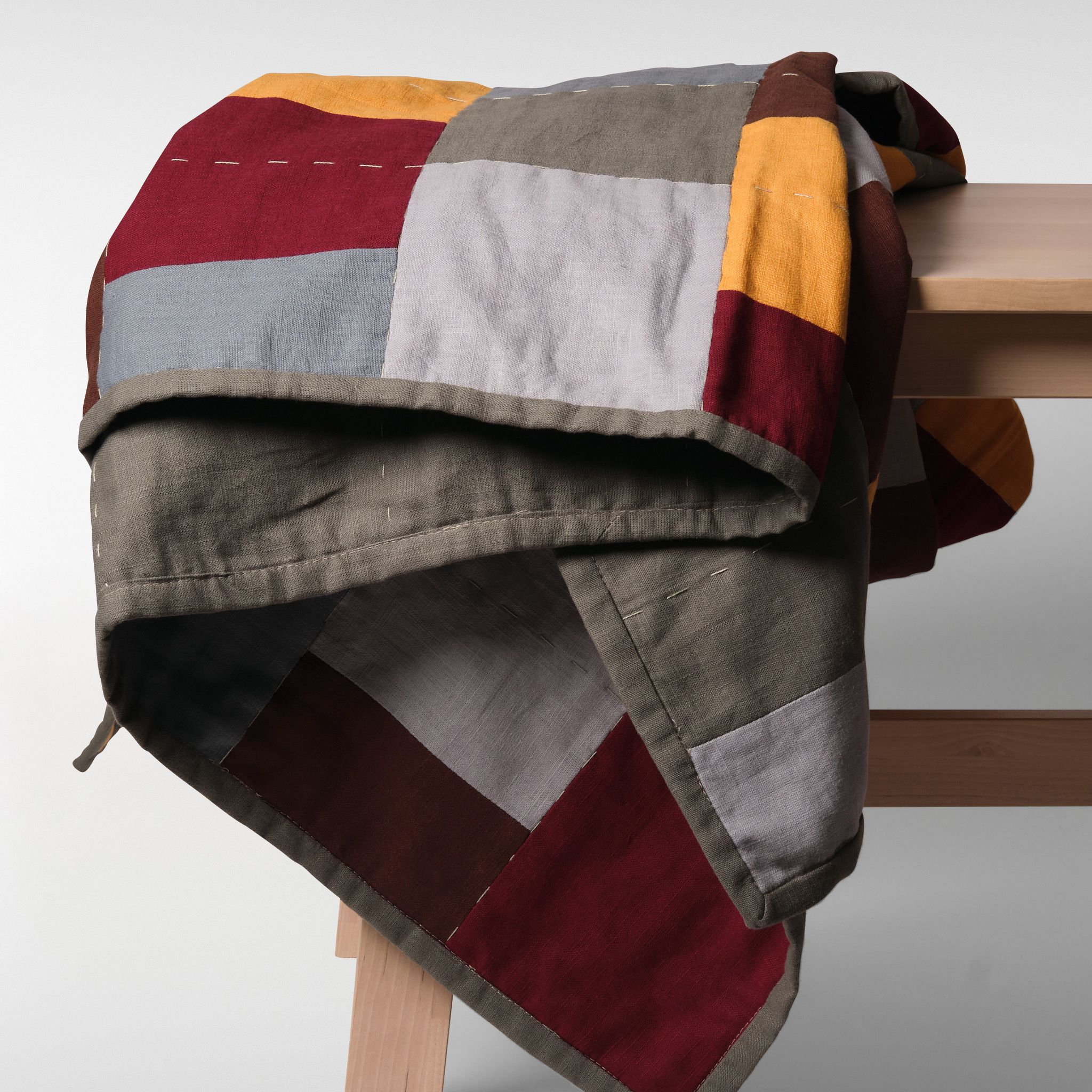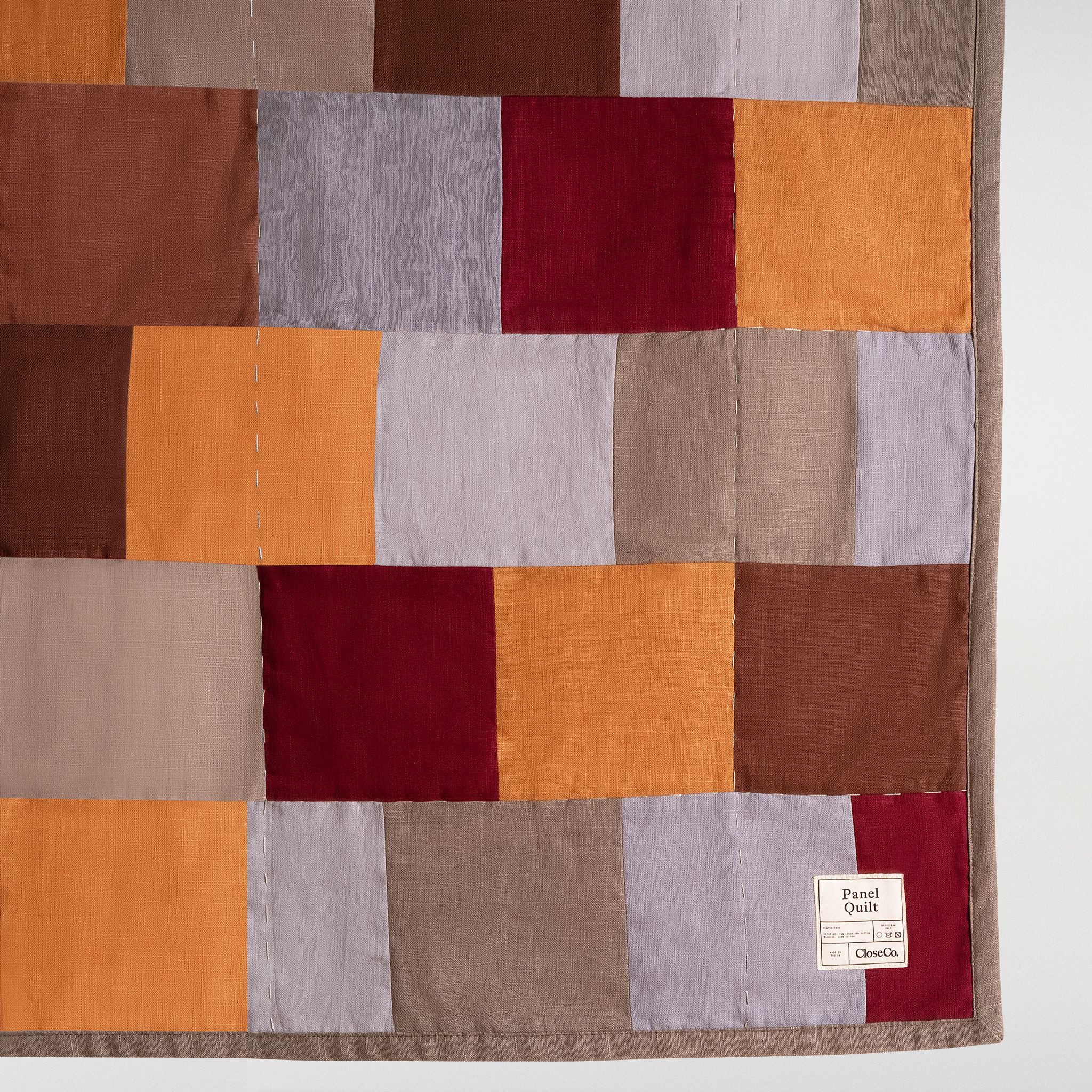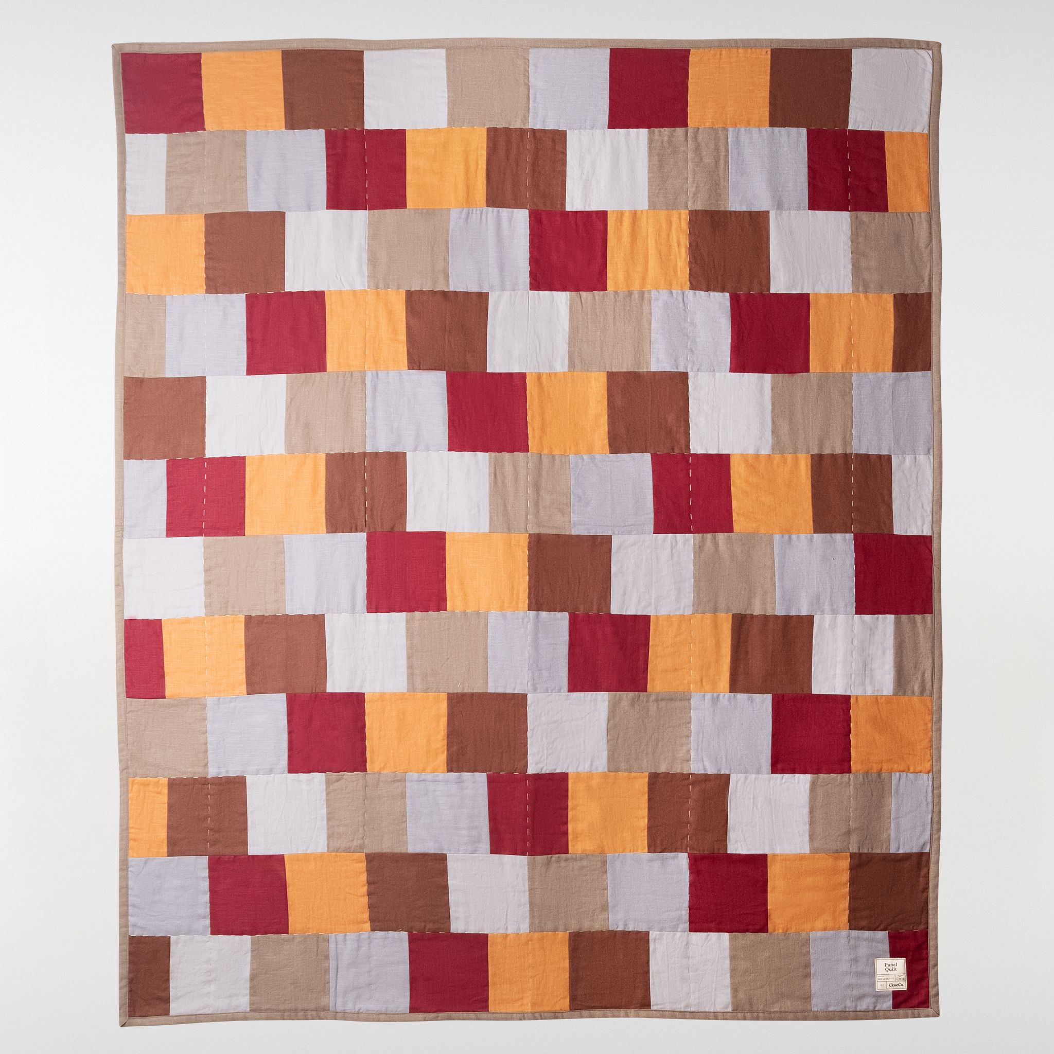 The Panel Patchwork Quilt is composed to feel settled and understated. Its panelled arrangement brings a sense of order and ease, offering visual structure without becoming a focal point.